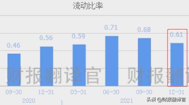 2021年公司有100元的短期负债,只对应有61元的流动资产作为保障,流动比率为0.61。如果发生意外,即使管理层把流动资产都变现了,也无法偿还债务。