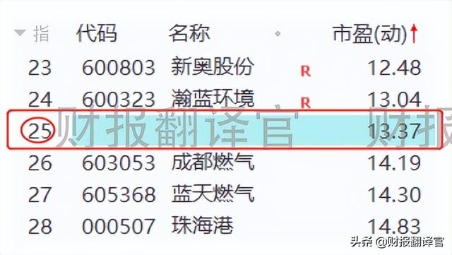 而这个市盈率,在A股天然气板块118家上市公司中,排名第25位。名次处在板块中等偏上的位置,说明该企业并没有被高估。