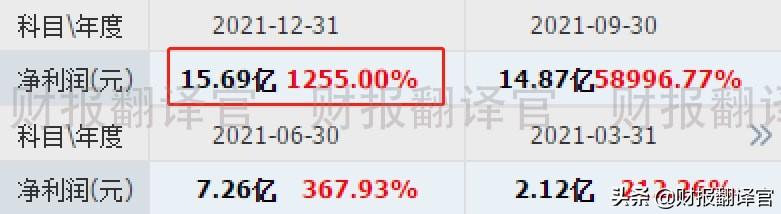 在2021年公司的业绩连续四个季度实现了大幅度的增长,全年的净利润达到了15.69亿元,同比大幅增长了1255%,并创出了历史新高。