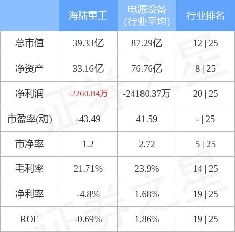 海陆重工主要指标及行业内排名如下:
