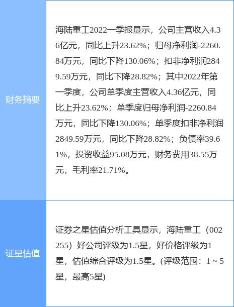 本文摘要:4月25日盘中消息,11点16分海陆重工(002255)封跌停板。目前价格4.67,下跌10.02%。其所属行业其他电源设备目前下跌。领涨股为新雷能。该股为核电,充电桩,新能源汽车概念热股。资金流向数据方面,上个交易日主力资金净流入989…. …