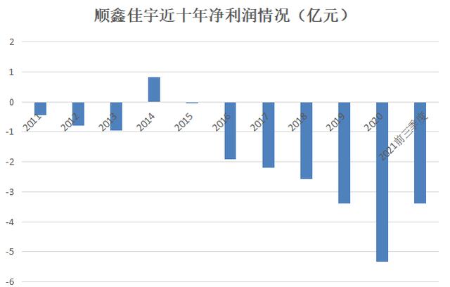 处于亏损的这九年,再加上2021年前三季度的亏损,顺鑫佳宇的亏损总额已超21亿元。