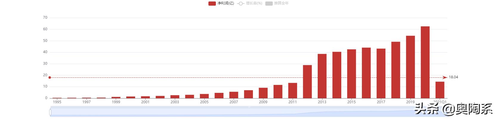 双汇发展1995年营业收入15.38亿元,2020年为739.4亿元,25年上涨47倍,1995年净利润为0.38亿元,2020年为62.56亿元,25年上涨164倍。可以说双汇的业绩表现一直都比较强劲,净利润只有2017年同比下降1.95%,其余年份均取得正增长。虽然2021年一季度净利润出现了微弱的下滑(同比下滑1.61%,营业收入同比增长4.13%),但是前景仍然还是比较乐观的。