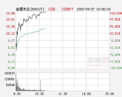 金融界网站4月7日讯 今日金健米业开盘报9.75元,截止10:35分,该股涨10.03%报10.86元,封上涨停板。