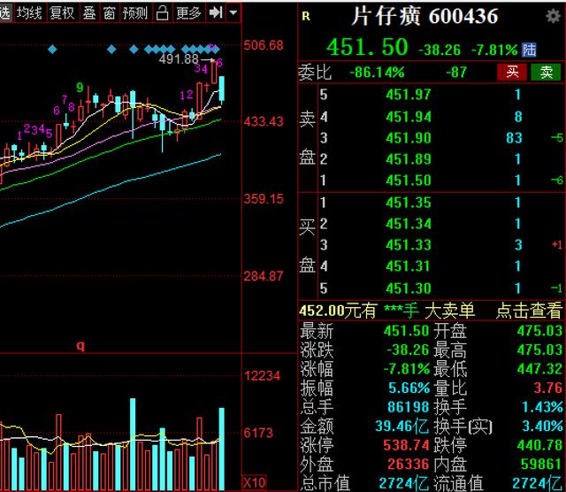 本文摘要:财联社7月22日讯,中药板块今日早盘走弱,片仔癀暴跌7.93%,健民集团、步长制药、精华制药跟跌。昨日一根大阳线,创下新高491.88元的药中茅台,这是怎么了?消息面上,昨日晚间,公司控股股东九龙江集团宣布计划减持不超过603.32万股,若… …