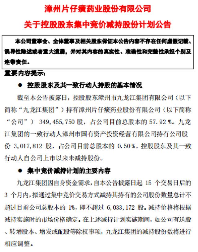 值得一提的是,此前控股股东及其一致行动人自公司上市以来未减持股份。也就是说,这是片仔癀上市以来第一次被大股东减持,十分罕见。
