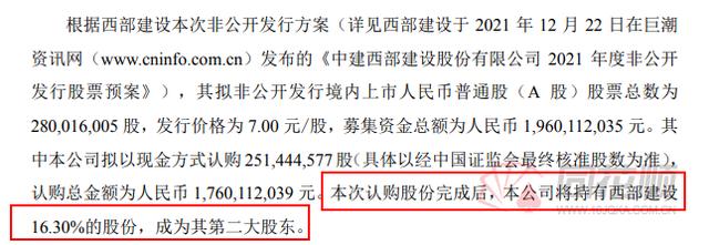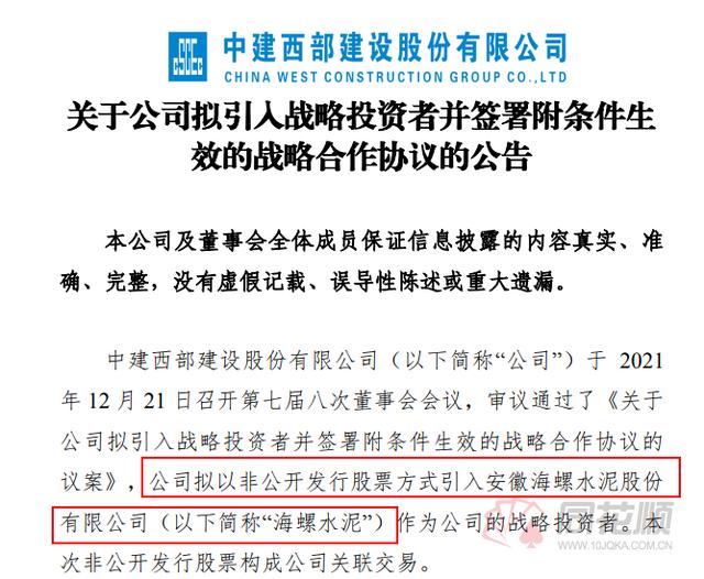 本文摘要:西部建设(002302)12月21日晚间公告,拟非公开发行股票280,016,005股,其中,中建西南院为关联方中建集团所控制的下属企业,拟认购股票数量为28,571,428股;海螺水泥(600585)作为战略投资者,拟认购股票数量为251… …