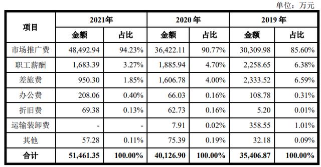 招股书称市场推广费增幅较大,是随着公司营业规模不断扩大,公司加大产品推广力度所致。