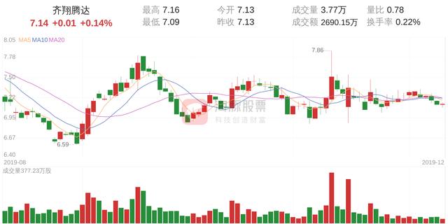 齐翔腾达今日上涨0.14%,股价为7.14元,成交金额为2690.15万元,成交3万手,换手率为0.22%。