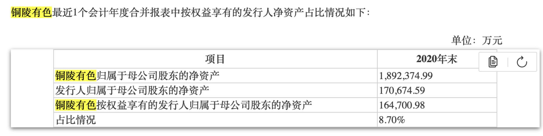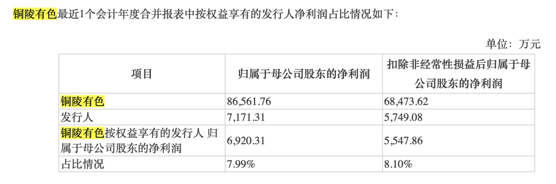 铜冠铜箔的控股股东为铜陵有色,本次发行属于分拆上市。招股书显示,2020年铜冠铜箔扣非后归母净利润占比为8.10%,净资产占比为8.7%。此次发行前铜陵有色持有铜冠铜箔股份比例为96.5%。