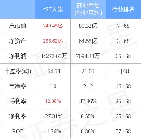 *ST大集主要指标及行业内排名如下: