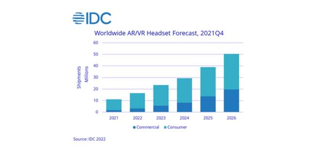 AR/VR设备能否大规模应用是影响歌尔股份未来盈利增速的关键。但调研机构对VR/AR新一年的市场增速预测大幅低于上年——IDC预计2022年头显出货量将同比增长46.9%。