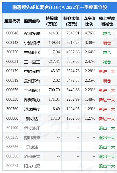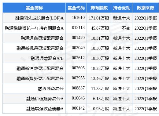 根据2022Q1季报基金重仓股数据,重仓该股的基金共10家,其中持有数量最多的基金为融通领先成长混合(LOF)A。融通领先成长混合(LOF)A目前规模为18.97亿元,最新净值1.643(3月22日),较上一日下跌0.12%,近一年下跌15.22%。该基金现任基金经理为邹曦 何龙。邹曦在任的公募基金包括:融通行业景气混合A,管理时间为2012年7月3日至今,期间收益率为220.98%;融通通乾研究精选混合,管理时间为2020年1月2日至今,期间收益率为24.84%;融通产业趋势股票,管理时间为2020年5月9日至今,期间收益率为2.23%。何龙在任的公募基金包括:融通红利机会主题精选混合A,管理时间为2019年8月22日至今,期间收益率为86.21%;融通新蓝筹混合,管理时间为2020年1月2日至今,期间收益率为9.78%;融通通益混合,管理时间为2020年6月2日至今,期间收益率为16.85%。