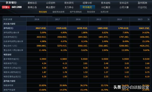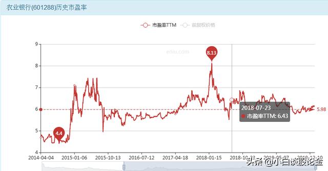 上述就是估算的结果了,有些朋友看到了这个结果会说,2019年股价都没达到你说的数值,其实是因为股价被低估了。与估值差的越多,估值就被低估的更严重,买入后将会获得的收益会越好。至于被低估的原因,大家可以从上面其中一个图形中看出来,从2013年开始净资产收益率在逐年降低,市场对农业银行的未来不是非常看好,尽管价格已经被低估了,但是看好的人还是不多。