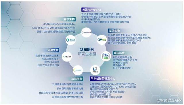 在医药工业深化创新和转型工作中,华东医药正在逐步构建研发生态圈。华东医药陆续投资、控股、孵化多家国内拥有领先技术的生物科技公司,包括投资了多肽技术平台型企业派金生物、专注免疫疾病的抗体公司荃信生物、有ADC连接子与偶联技术的诺灵生物,孵化了拥有开发ADC药物毒素原料全产品线的珲达生物,控股了多抗平台型公司道尔生物。
