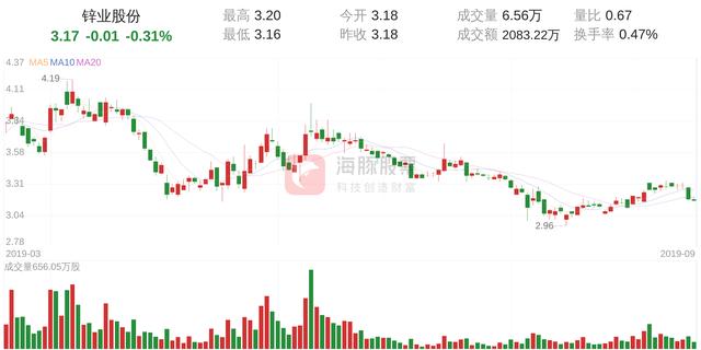 锌业股份今日下跌0.31%,股价为3.17元,成交金额为2083.22万元,成交6万手,换手率为0.47%。