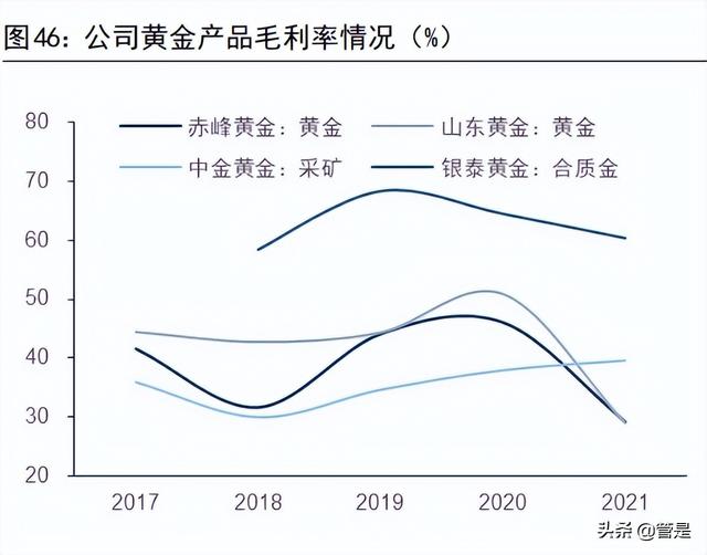 公司主营业务为黄金、有色金属采选,我们选取山东黄金、中金黄金、银泰黄金3 家黄金企业作为可比公司。 山东黄金(600547.SH、1787.HK)以黄金矿产资源开发利用为主业,采用分散采选、集中冶炼的生产模式,公司所辖矿山企业分布于中国山东、福建、内蒙、甘肃、新疆等地以及南美洲阿根廷、非洲加纳等国家,截至2021 年末,公司黄金资源金属量为 1479 吨,对应权益量 1281 吨。2021 年,受山东省非煤矿山安全检查影响,公司产量有所下降,矿产金产量大幅下降 36.06%至24.78 吨。2022年公司黄金产量目标为不低于 39.267 吨。