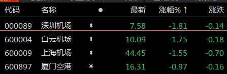 有涨就有跌,此次河南暴雨天气,对全国的航空、火车等交通运输行业造成极大影响。7月21日,深圳机场(000089.SZ)、白云机场(600004.SH)、上海机场(600009.SH)、厦门空港(600897.SH)等机场概念股的股价分别跌1.81%、1.75%、1.55%、0.97%;同时,京沪高铁(601816.SH)、广深铁路(601333.SH)、铁龙物流(600125.SH)等铁路概念股也走低,当日分别跌0.96%、0.48%、042%,大秦铁路(601006.SH)则微涨0.17%。