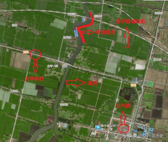 3月12日,侦察员回来报告,在太平桥有一个中队的日本鬼子和近百名伪军,抢劫了老百姓的船只与大量物资,正在往据点里运。叶建民参谋长当机立断,下命令道:“快,二营长,马上截击!”23团指战员对太平桥在内的阜宁县相当熟悉,决定在离太平桥三里远的河湾伏击日伪军,这处地方是伏击的好地方:水流向南,河两岸均是树林、田埂,狭窄的水道只能容两只船通过,由于河水在不远处拐弯,水的流速很急,人落水也不容易爬上岸。23团2营指战员向伏击地紧急出发,同时派出2名参谋骑马去联系阜宁县大队和区小队民兵尽快赶来配合作战。