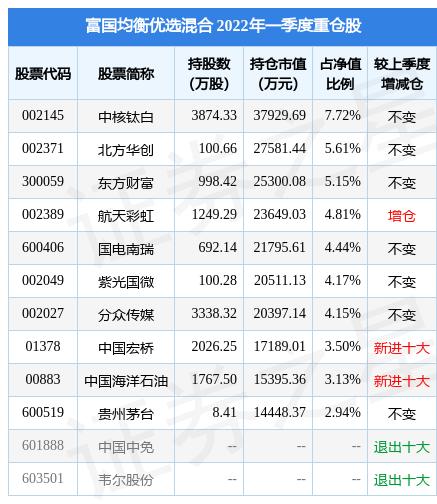 重仓中核钛白的前十大基金请见下表: