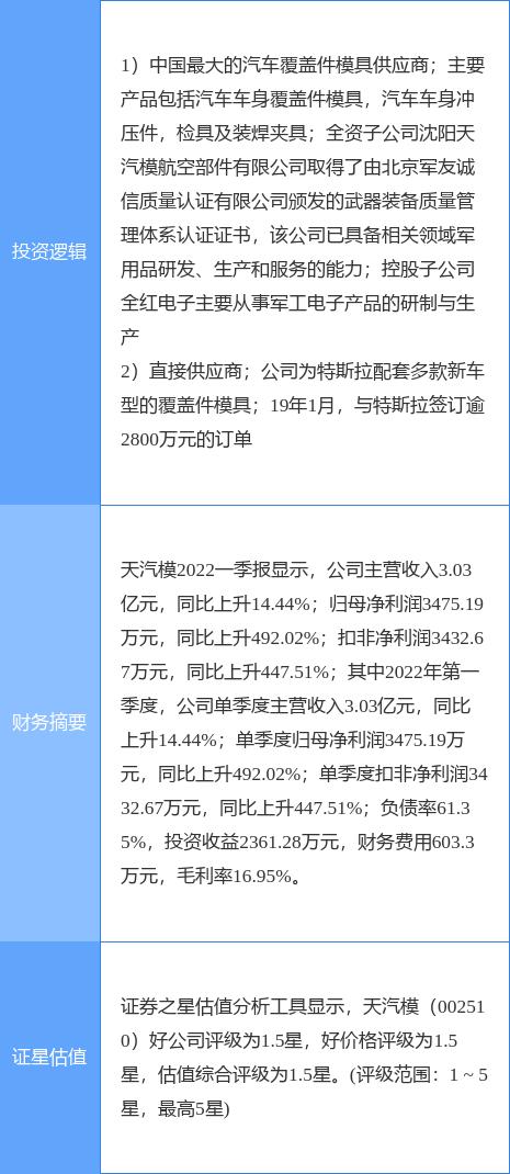 原文标题:5月5日天汽模涨停分析:特斯拉,军民融合,军工概念热股