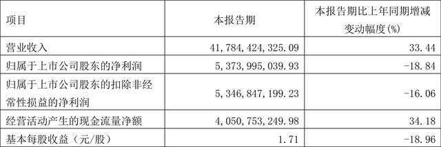 本文摘要:中证财讯 万华化学(600309)4月26日披露2022年第一季度报告。报告期内公司实现营业总收入417.84亿元,同比增长33.44%;归母净利润53.74亿元,同比下降18.84%;扣非净利润53.47亿元,同比下降16.06%;经营活… …