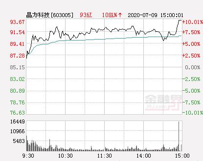 金融界网站7月9日讯 今日晶方科技开盘报86.7元,截止15:25分,该股涨10.01%报93.67元,封上涨停板。