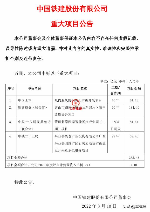 本文摘要:刚刚,中国铁建发布365亿重大项目公告:虽然此次公布的只有4个项目,但都是重大项目。咱们挨个来看下:铁建投资囊获184亿唐山大项目由铁建投资集团、中铁十六局、中铁十八局、中铁二十一局、中国铁建电气化局、铁五院、铁建苏州设计研究院、中铁建投资… …