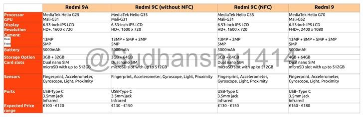 IT之家6月1日消息 近日有外国博主曝光了全新Redmi 9、Redmi9A、Redmi9C的规格参数和价格信息。