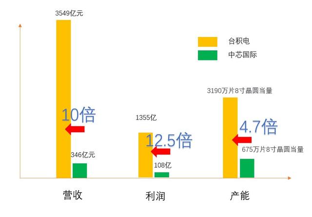 可见台积电的营收是中芯国际的10倍多,而利润是是中芯国际的12.5倍,毛利率是中芯国际的1.7倍。