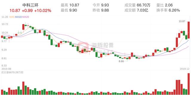 根据海豚股票数据统计显示,截至收盘,中科三环股价报10.87元,涨跌幅为10.02%,换手率为6.26%,全天成交7.03亿元。