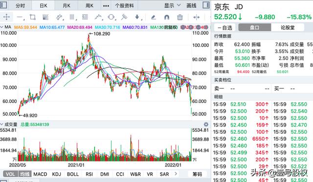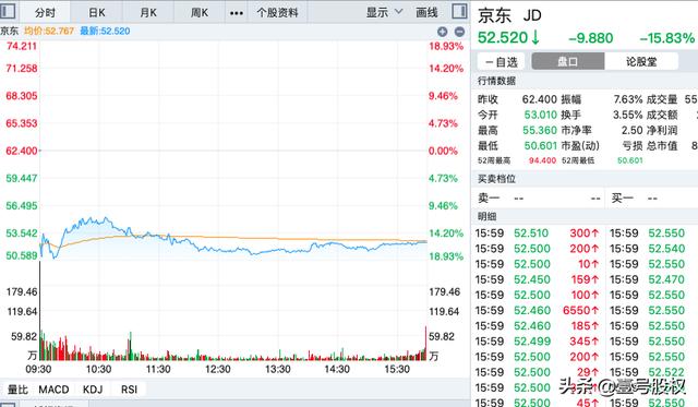本文摘要:京东美股价格暴跌近16%,市值蒸发近1000亿人民币,开盘大幅低开15.9%,盘中最大跌幅近19%,收盘时股价跌幅收窄至15.82%,这恐怕也是京东历史上最大的单日跌幅了,股价收于52.5美元/股,总市值也跌至819亿美元(约5200亿人民… …