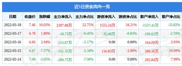 资金流向数据方面,当日主力资金净流入2397.88万元,游资资金净流入1555.24万元,散户资金净流出1537.41万元。近5日资金流向一览见下表: