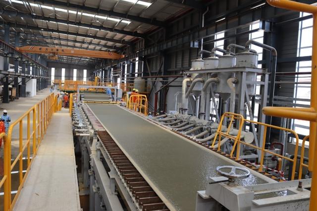图为2022年1月,中材节能首个海外硅酸钙板工厂——中国建材尼日利亚新材料有限公司实现批量化生产。