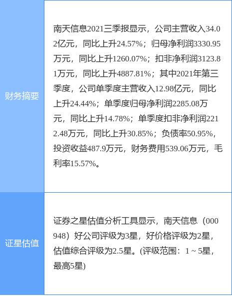 本文摘要:2月28日盘中消息,9点30分南天信息(000948)封涨停板。目前价格16.97,上涨9.98%。其所属板块软件开发目前上涨。领涨股为四方精创。资金流向数据方面,上个交易日主力资金净流出1350.42万元,游资资金净流出542.88万元,… …