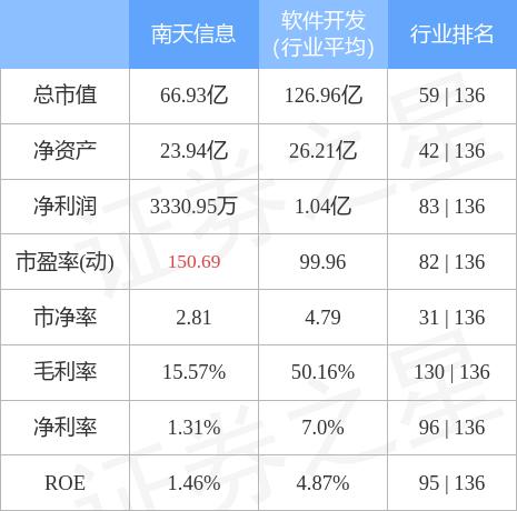 南天信息主要指标及行业内排名如下: