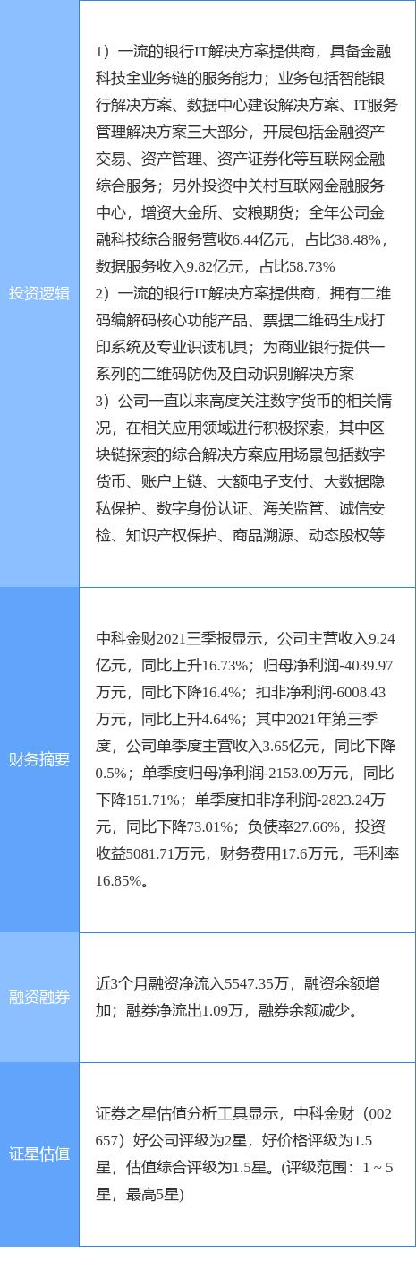 本文摘要:中科金财涨停收盘,收盘价18.61元。该股于13点24分涨停,3次打开涨停,截止收盘封单资金为1.01亿元,占其流通市值1.91%。资金流向数据方面,当日主力资金净流入9467.45万元,游资资金净流入1.35亿元,散户资金净流出1971…. …