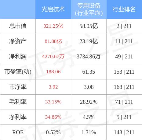 光启技术主要指标及行业内排名如下: