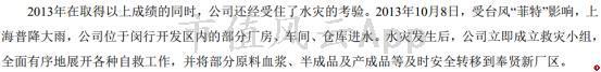 在上海莱士2013年的董事会报告中,风云君没有找到任何关于水灾管理不善的反思,反而变成管理层的邀功:“2013年在取得以上成绩的同时,公司还经受住了水灾的考验”。