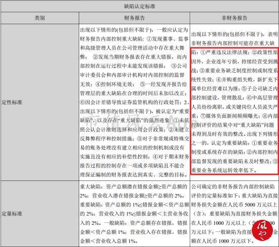 从缺陷认定标准管中窥豹,就可以看出整个公司内控管理的精细程度。
