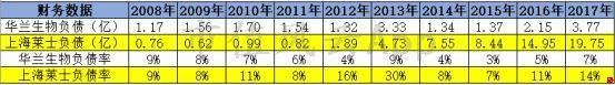 华兰生物在财务杠杆上,也比上海莱士谨慎得多,上海莱士这6年来债务从1.89亿增长十倍到19.75亿。