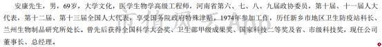 安康曾经担任过兰州生物制品研究所所长,享受国务院政府特殊津贴。
