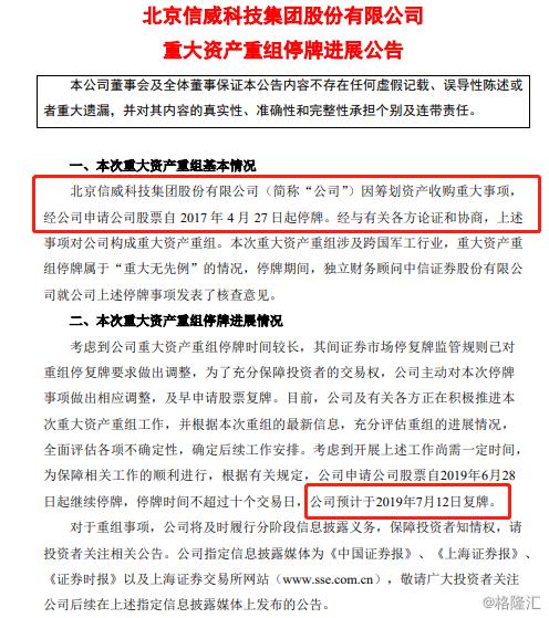 如今,*ST信威(600485.SH)的雷声接踵而至再次轰隆作响。在等待了漫长的1000天后,*ST信威超15万的股民或将绝望,周日晚上,公司发公告称,预计于2019年7月12日起复牌。