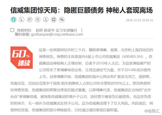 而此番长达1000个日夜的停牌故事,要从2016年12月24日平安夜来临之际的前夕说起。当时,有媒体刊发的了一篇《信威集团惊天局:隐匿巨额债务,神秘人套现离场》的文章,这或是开启公司股票漫长停牌之路的根源。