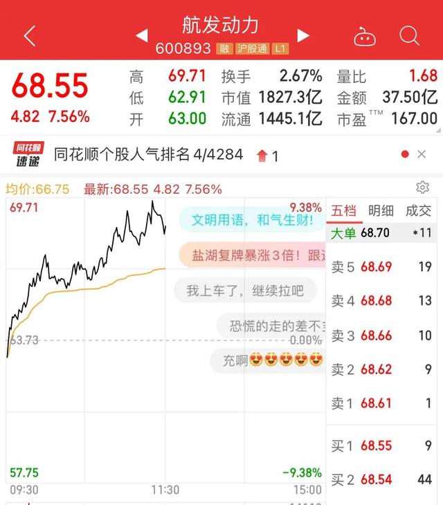 1800多亿市值的军工龙头航发动力,今天上午暴涨超7%。