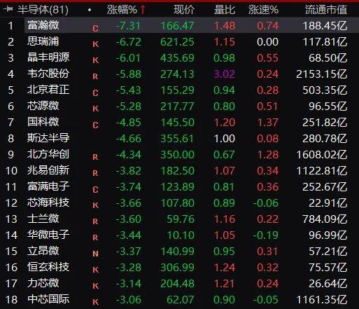 半导体芯片股是今天上午跌幅居前,富瀚微、思瑞浦、晶丰明源、韦尔股份、北京君正、芯源微等都跌幅不小。中芯国际也跌超3%。