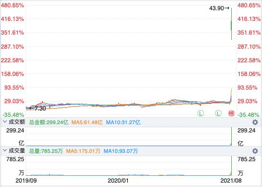 8月10日,盐湖股份开盘即爆涨388.12%,仅1分钟就触发了临时停牌,以43.15元/股的股价计算,总市值高达2344.29亿元,即使之后打开涨停,截至收盘股价报收35.9元,1950.4亿元的总市值也已经达到,在开盘瞬间就超过了之前中金公司、中信证券、银河证券等券商的预测估值。