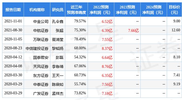 证券之星数据中心根据近三年发布的研报数据计算,中金公司孔令鑫研究员团队对该股研究较为深入,近三年预测准确度均值为79.57%,其预测2022年度归属净利润为盈利6.52亿,根据现价换算的预测PE为27。
