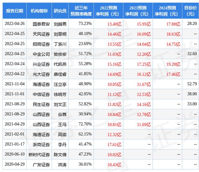 证券之星数据中心根据近三年发布的研报数据计算,国泰君安刘越男研究员团队对该股研究较为深入,近三年预测准确度均值为73.23%,其预测2022年度归属净利润为盈利13.4亿,根据现价换算的预测PE为19.39。