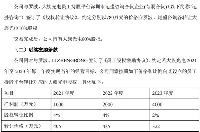 在此次估值7800万后,同样有一份后续协议,约定公司净利润在2021–2023三年达成净利润分别为1000/2000/4000万后有权获得股权激励。